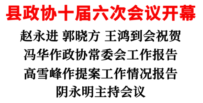 | 標(biāo)題:中國(guó)人民政治協(xié)商會(huì)議第十屆沁源縣委員會(huì)第六次會(huì)議開(kāi)幕 | |